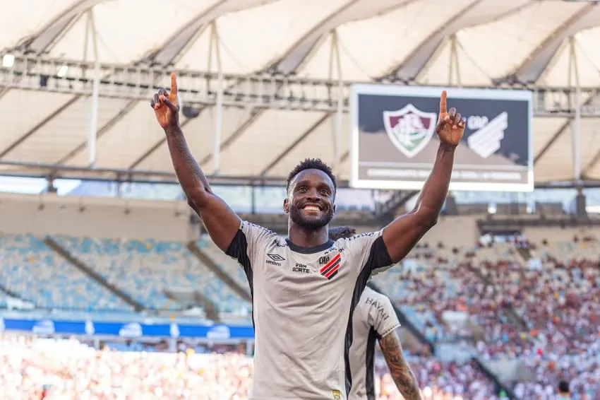 Mendoza, do Athletico, comemora "gol-relâmpago" contra o Fluminense no Maracanã (Foto: Vyctor Santos / Pera Photo Press)