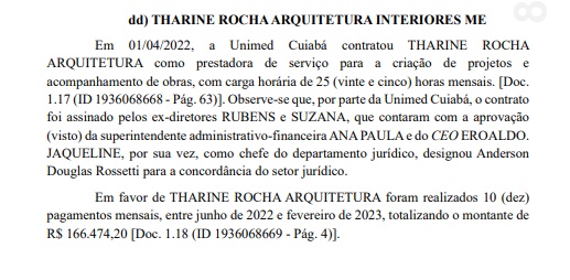 O Ministério Público Federal (MPF) suspeita que, durante a gestão do ex-presidente Rubens Carlos de Oliveira Júnior, a Unimed Cuiabá pagou a um escritório de arquitetura por serviços que jamais foram prestados.