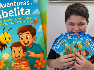 Um livro escrito a quatro mãos. Duas adulta e duas infantil. Esse é o mundo retratado em “As aventuras de Abelita: o mundo pelos olhos de uma abelha e dois meninos”, escrito pela jornalista Claudia Lazarotto em parceria com o filho, Lino Joaquim, de 10 anos. A história de Abelita e dos dois meninos – Lino e Vico, será lançada para o público infantil na segunda-feira, dia 06 de outubro, às 16 horas na Biblioteca Municipal Monteiro Lobato.